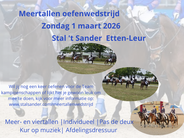 Een mooie gelegenheid om te oefenen voor de teamkampioenschappen of om met je team te schitteren in de ring en te genieten van de unieke sfeer van teamrijden.